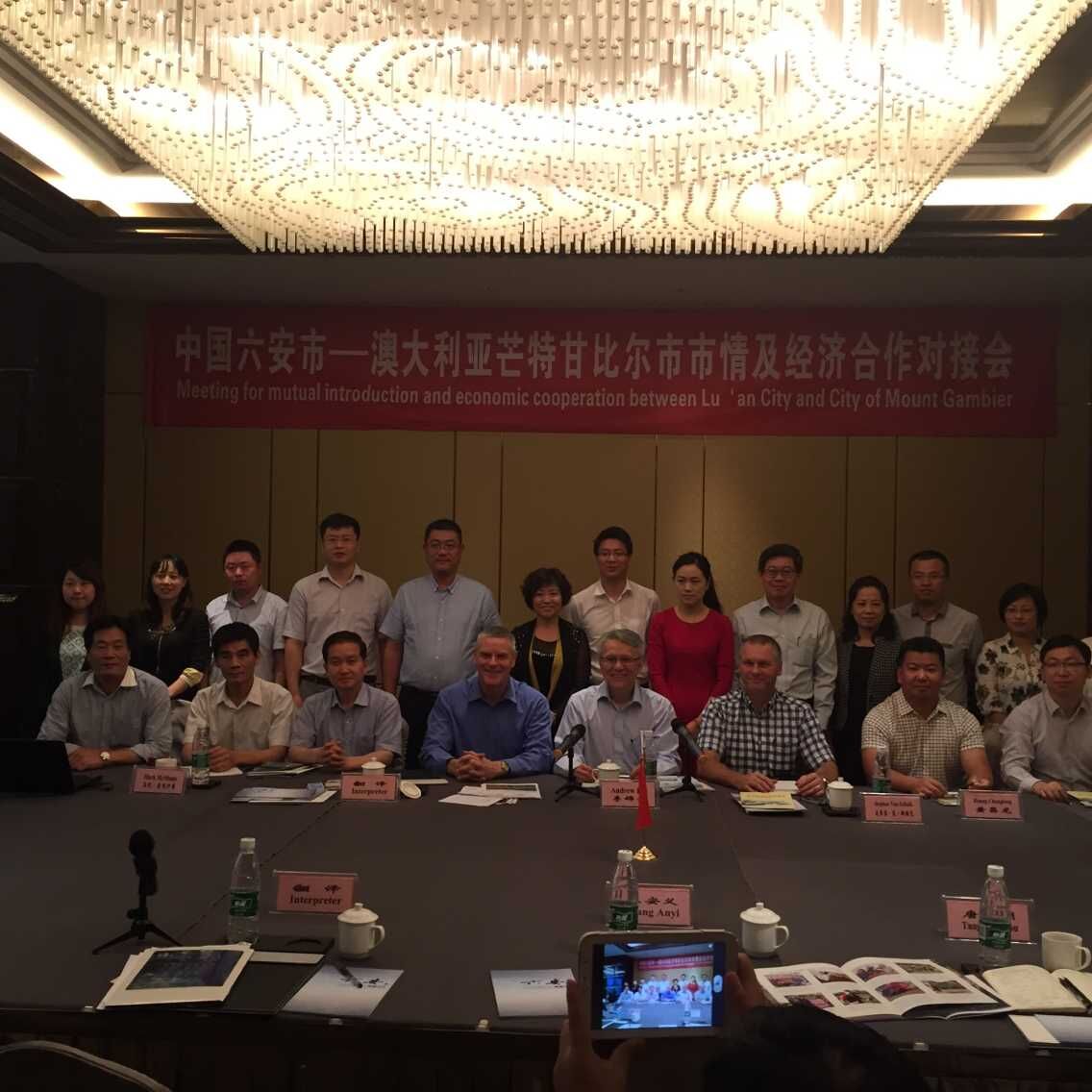 双方高度重视本次市情对接会。澳方代表团成员:市长芒特甘比尔市市长李锦堂先生,芒特甘比尔市首席执行官马克•麦克沙恩先生, BioGro生化公司总经理史蒂芬•范•斯海克先生,麦克唐纳公司董事肖恩•麦克唐纳先生。 六安市政府的对接团由市政府 毕小彬市长、王安义副市长、唐云洲秘书长、外办何献忠主任(翻译等)、发改委、农委、林业局、商务局、招商局、旅游委、、开发区、示范园区等单位负责人及安徽龙华竹业有限公司、吉宝皖江农产品物流园、六安市天润乳业有限公司、安徽誉丰木业有限公司、安徽圣农生物科技股份有限公司、安徽飞燕国际旅行社、迎驾国旅六安分部等企业代表。