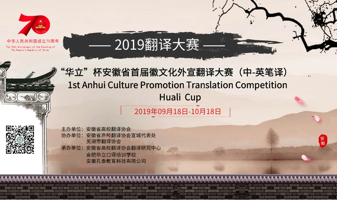 以习近平新时代中国特色社会主义思想为指导,以庆祝新中国成立70周年为契机,助力国家“一带一路”倡议实施,积极参与"文化自信"背景下外宣翻译及话语体系建设的课题研究,促进我省日益扩大的对外经济社会文化交流,团结皖籍友人共同推动安徽外宣工作,同时为选拔和培养高素质语言服务人才,促进高校英语翻译教学整体发展,安徽省高校翻译协会定于2019年10月举办首届徽文化外宣翻译大赛,本次大赛中文原稿由宣城市人民政府外事办公室供稿。