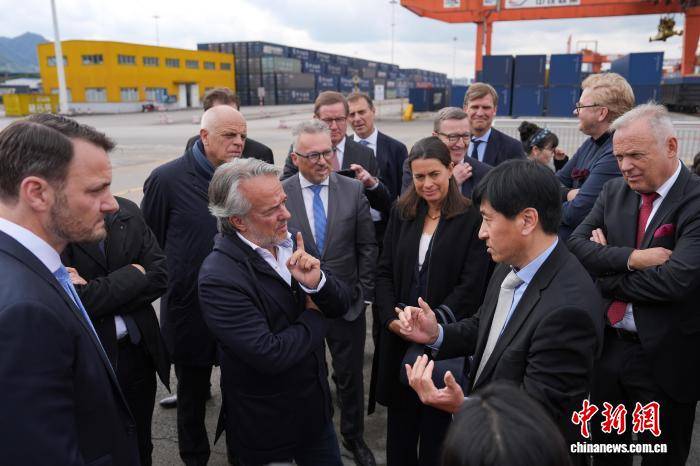3月18日,德国企业CEO考察团正在位于重庆沙(sha)坪坝区(qu)的重庆铁路集装箱中(zhong)心站考察。中(zhong)新社记者 何蓬磊 摄(she)